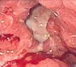 Endoscopic image of gastric ulcer, biopsy proven to be en:gastric cancer. Released into public domain on permission of