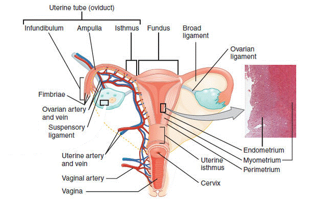 Fig. 13.9 Ovaries, oviducts, uterus and associated structures.